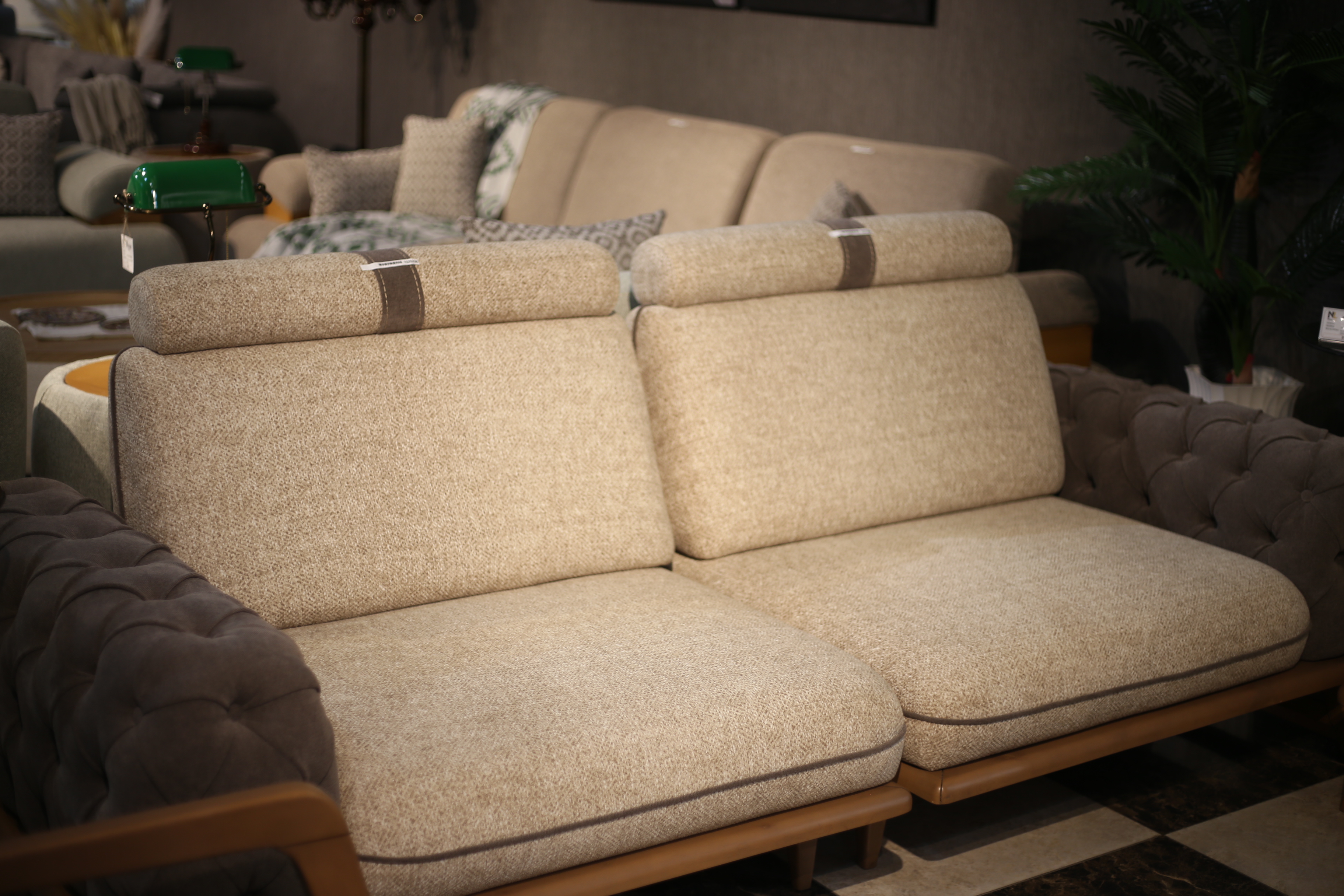 ფერი: ბეჟი, ნაცრისფერი დივანი ლურჯი სავარძლებით